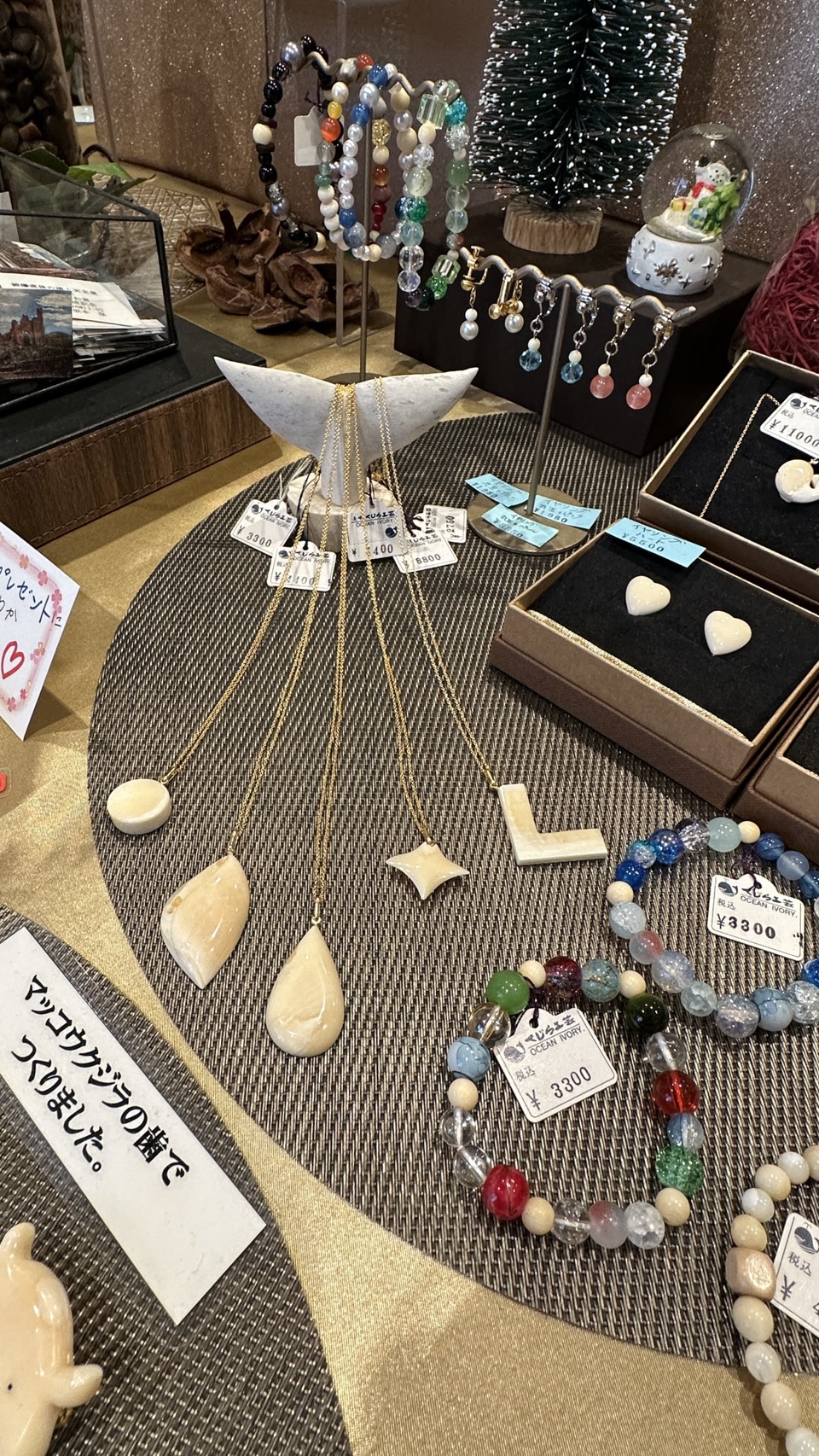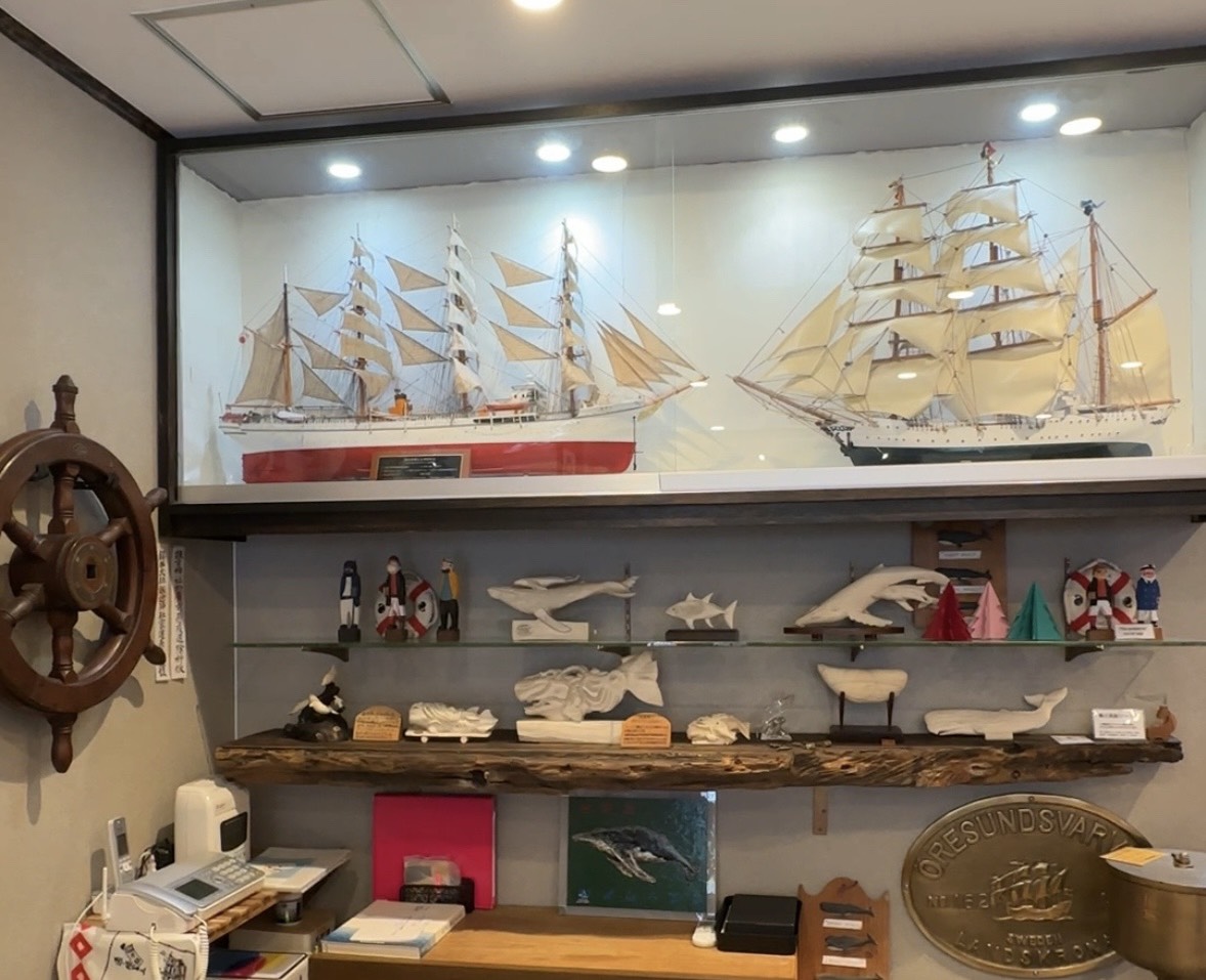 店内には販売用の商品だけでなく、くじら工芸の調度品も展示されています。